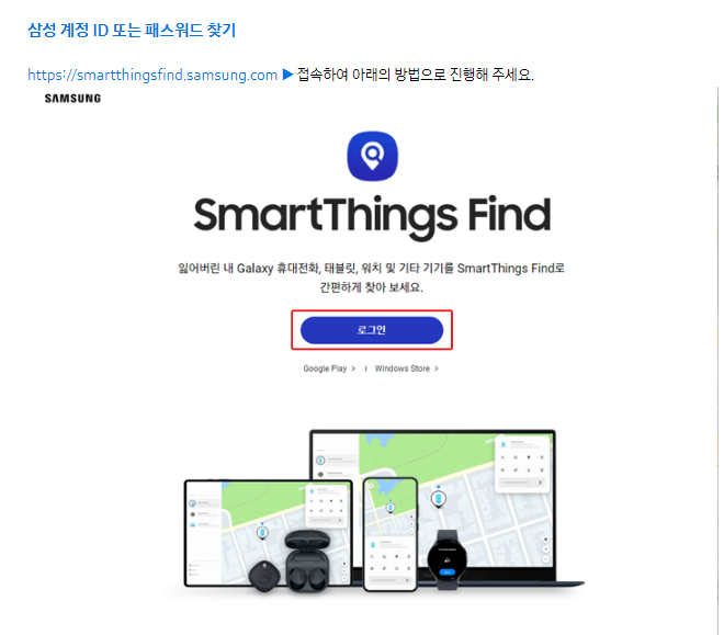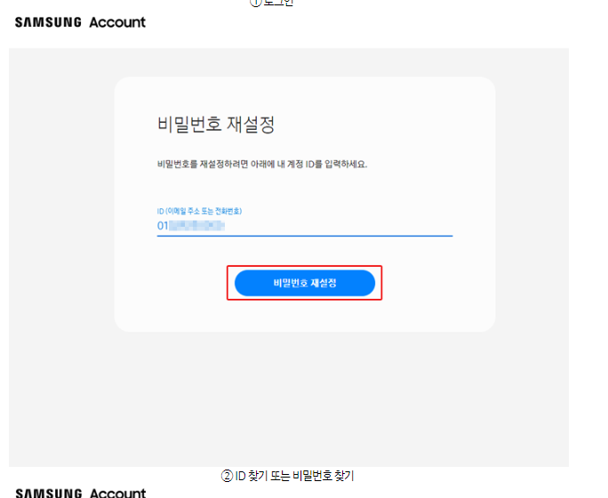 4. 스마트폰에 삼성 게정이 등록되어 있는 경우 ( 원격 잠금해제 기능이 설정되지 않은 상태에서는 아래 삼성 계정을 통한 잠금 해제가 불가합니다.